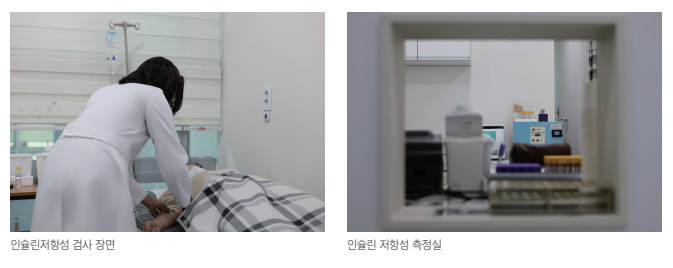 결론적으로는 비만환자에서게 인슐린을 쓸때는 인슐린 저항성을 꼭 확인하고 치료를 해야한다. 이를 위해, 본 병원 은 인슐린저항성 검사(kitt)를 시행한다. 이 검사는 저혈당 도 유발될 수 있는 복잡하고 까다로운 검사이지만, 인슐린 까지 맞는 진행된 당뇨병환자에서 인슐린저항성을 비교적 정확하게 확인할 수 있어서다. 반면 이와 비교되는 HOMA- IR방법은 인슐린분비가 무너진 진행된 당뇨병환자에게는 정확도가 떨어진다.