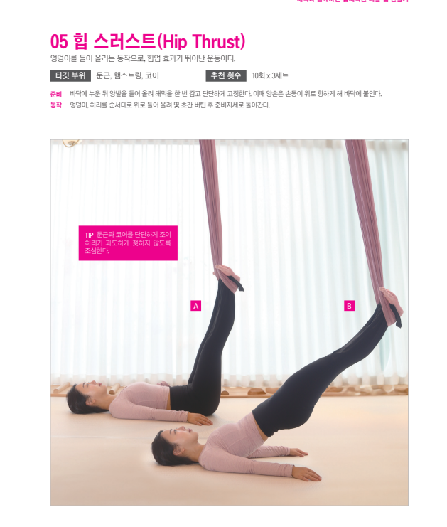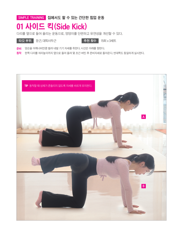타깃 부위: 둔근, 모음근 추천 횟수 : 10회 x 3세트