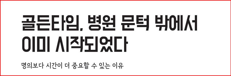 이제는 굳이 의료 전문가가 아니더라도 응급환자 발생 시 '골든타임'이 중요하다는 것을 모르는 경우는 드물 다. 심지어 너무 익숙해서, 오히려 그 내용을 잘 모르는 경우가 많다. 흔히 '빨리 병원에 가야 한다'는 의미로 받 아들여지지만, 의학적으로 골든타임은 단순한 속도의 문제가 아니다. 그것은 시간이 지날수록 해당 세포, 조 직 손상이 점점 회복이 불가능해지는 의학적 과정으로 이해해야 한다.